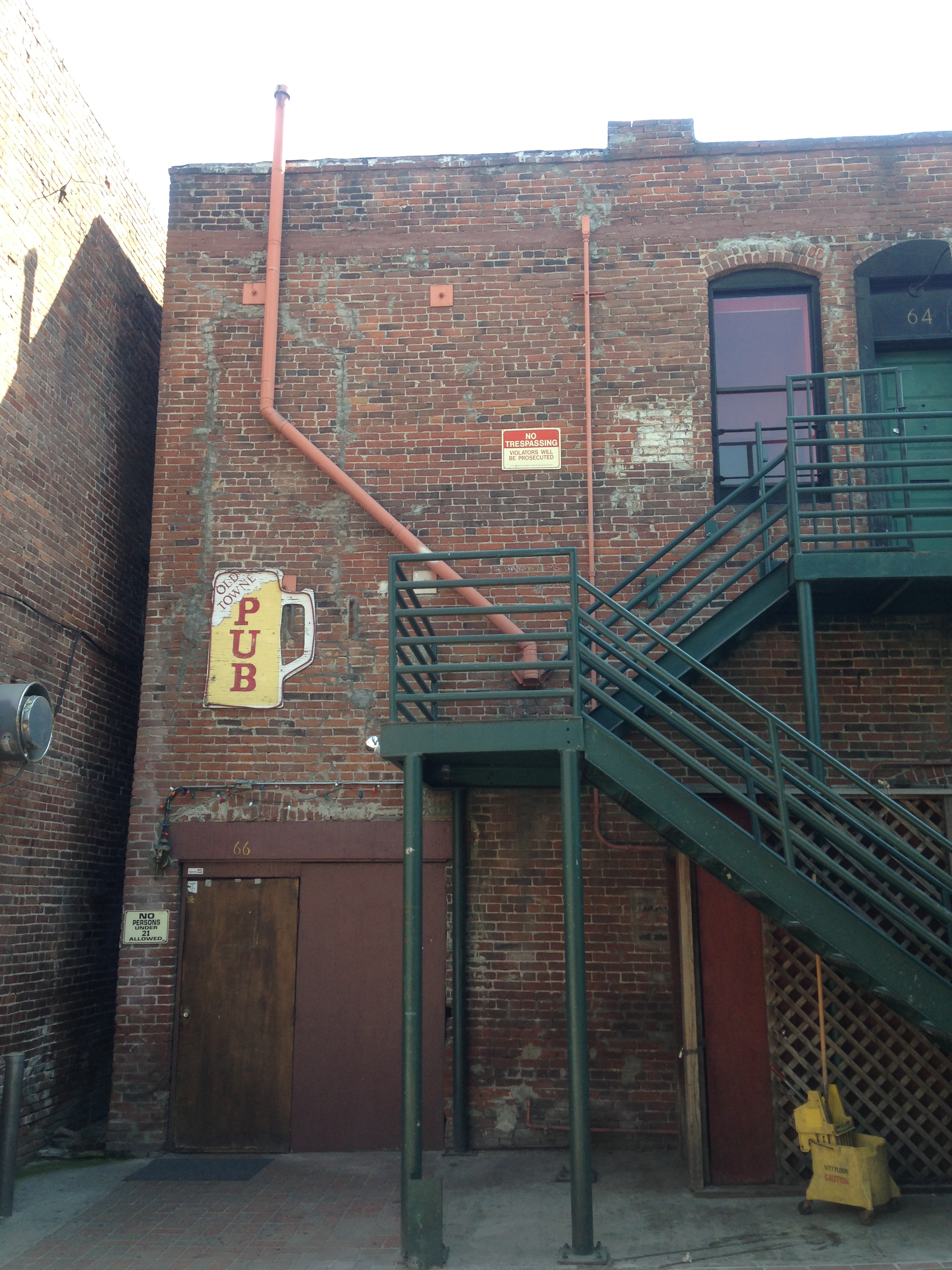 Old Towne Pub is located in an alley just off of Fair Oaks and Holly Streets. When walking south on Fair Oaks from the Courtyard Marriott, make a left at the alley just past the restaurant Tortas Mexico and you will see the entrance to Old Towne Pub on your right hand side. Unfortunately we’re not in Germany any more and the pub is only open to the 21+ crowd.